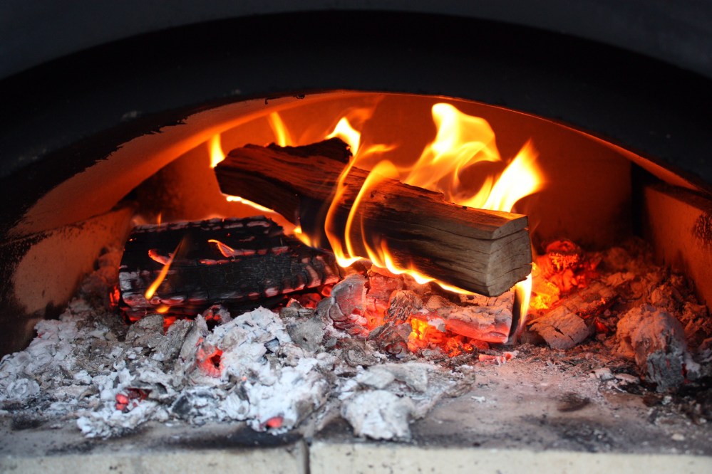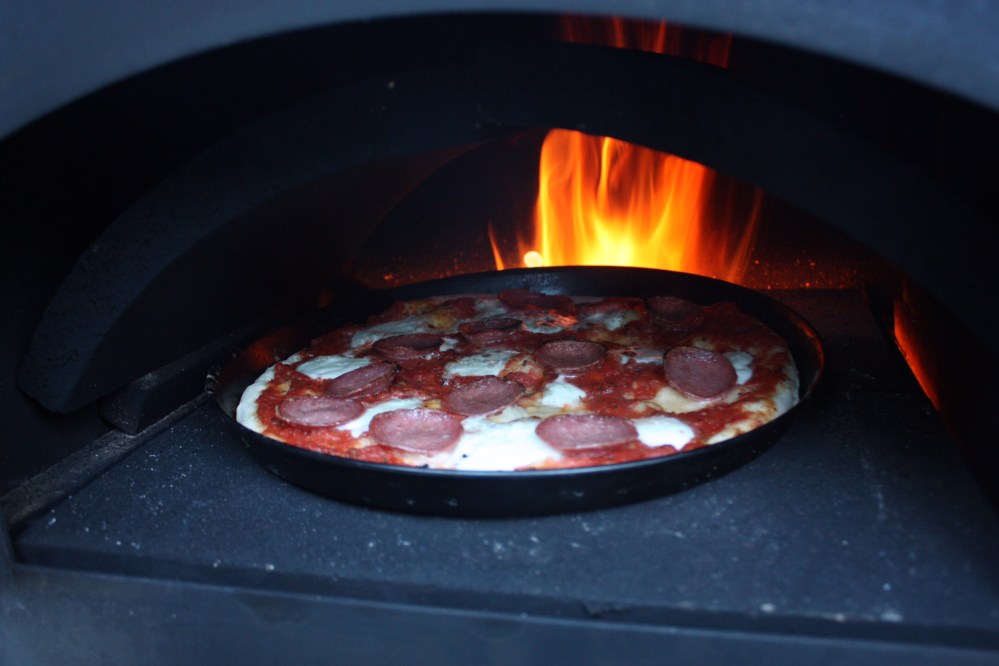 bevor man die Pizza auf den Pizzastein legt, wird dieser mit Salz bestreut.