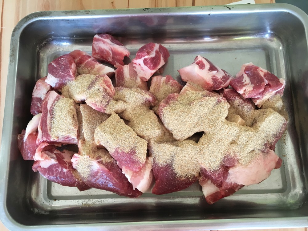 Alles was man braucht ist ein Fleischwolf mit feiner Scheibe (3mm) und das Fleischkäse Starterset von Royal Spice. Dazu werden noch 600g Schweinenacken 400g ausgelöster Schweinebauch und 300g Crushed Eis benötigt.