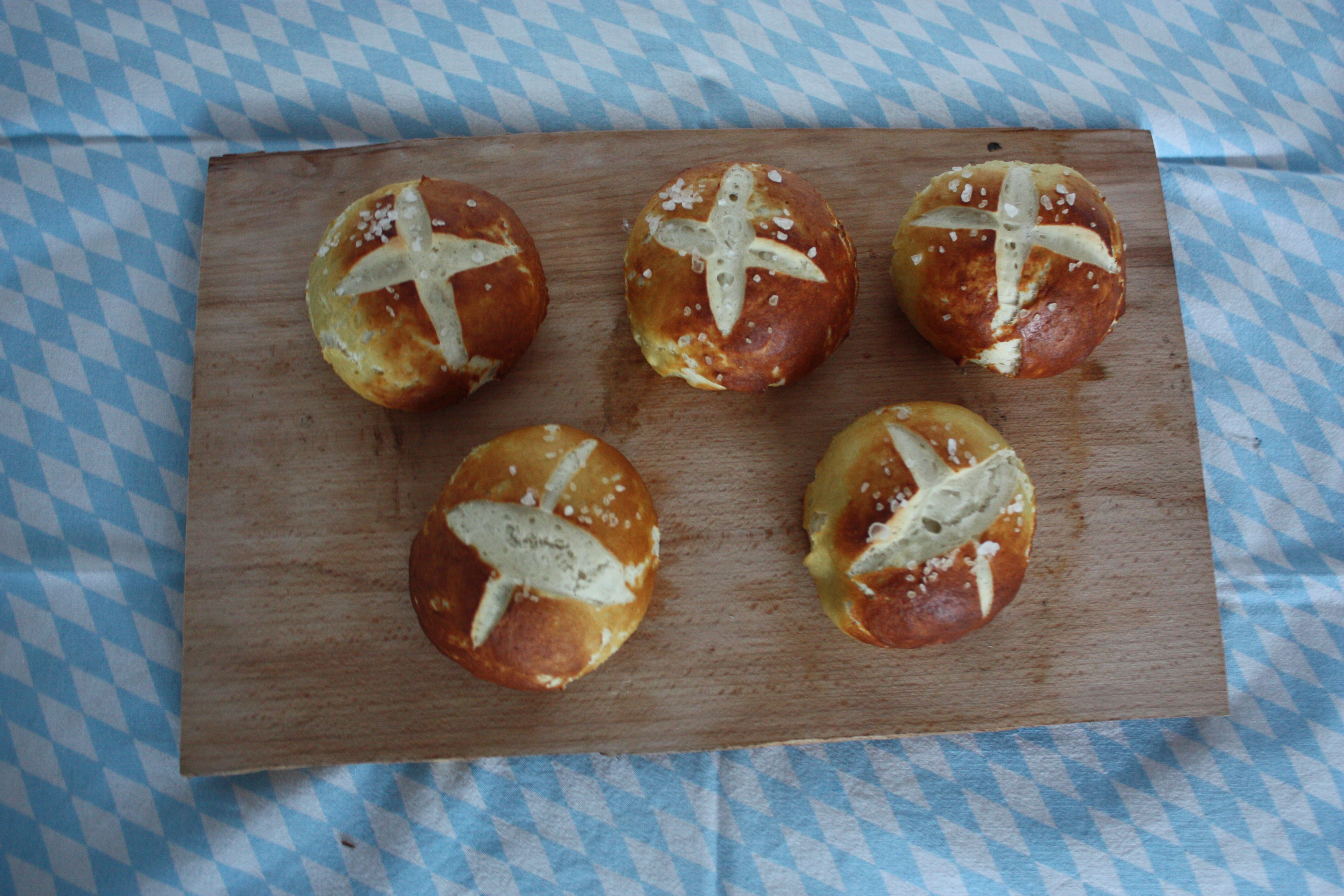 Fertig sind die leckeren Laugenbuns. Schmecken perfekt als Burger mit Krautsalat und Fleischkäse, mit Sauerkraut und Nürnberger Würstchen oder einfach so mit guter Butter.