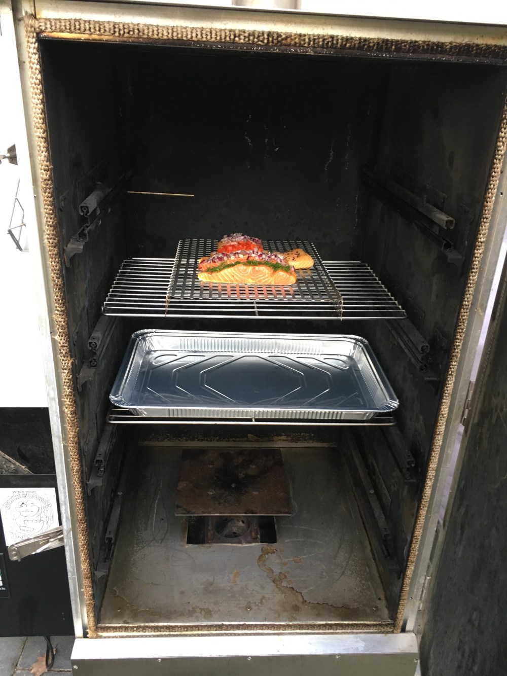Im Pelletsmoker habe ich die Stremel auf auf kleinster Stufe bei 80 Grad 2,5 Stunden geräuchert, bis sie im Kern 60 Grad hatten.
