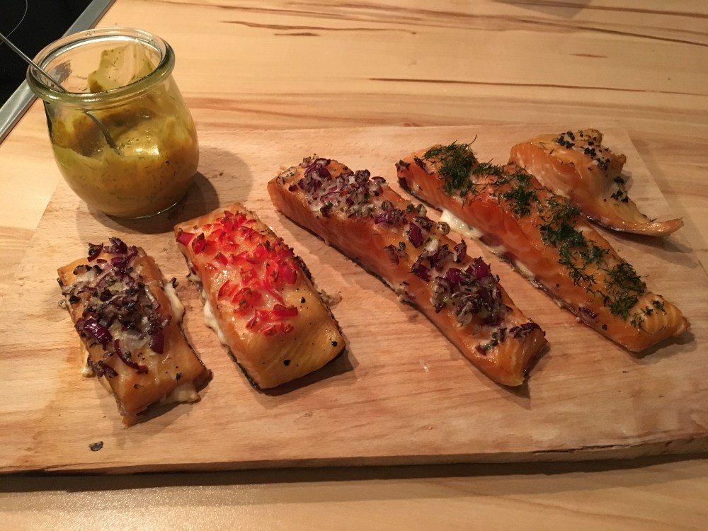 Dazu passt eine Sauce aus Senf einem Schuß Öl gehacktem Dill und Zucker.