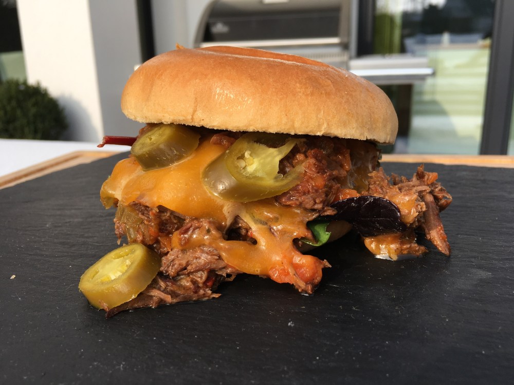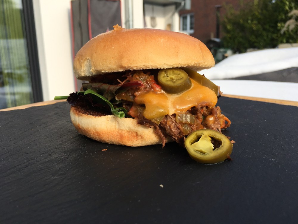 Der originale Sloppy Joe ist ein ursprünglich US-amerikanischer Imbiss, bei dem eine Hackfleischsauce in einem Hamburgerbrötchen serviert wird. Ich habe das Rezept etwas abgewandelt und ein Stück Tafelspitz zu „Sloppy Joe’s Pulled Beef Burger“ im Dutch Oven verarbeitet.