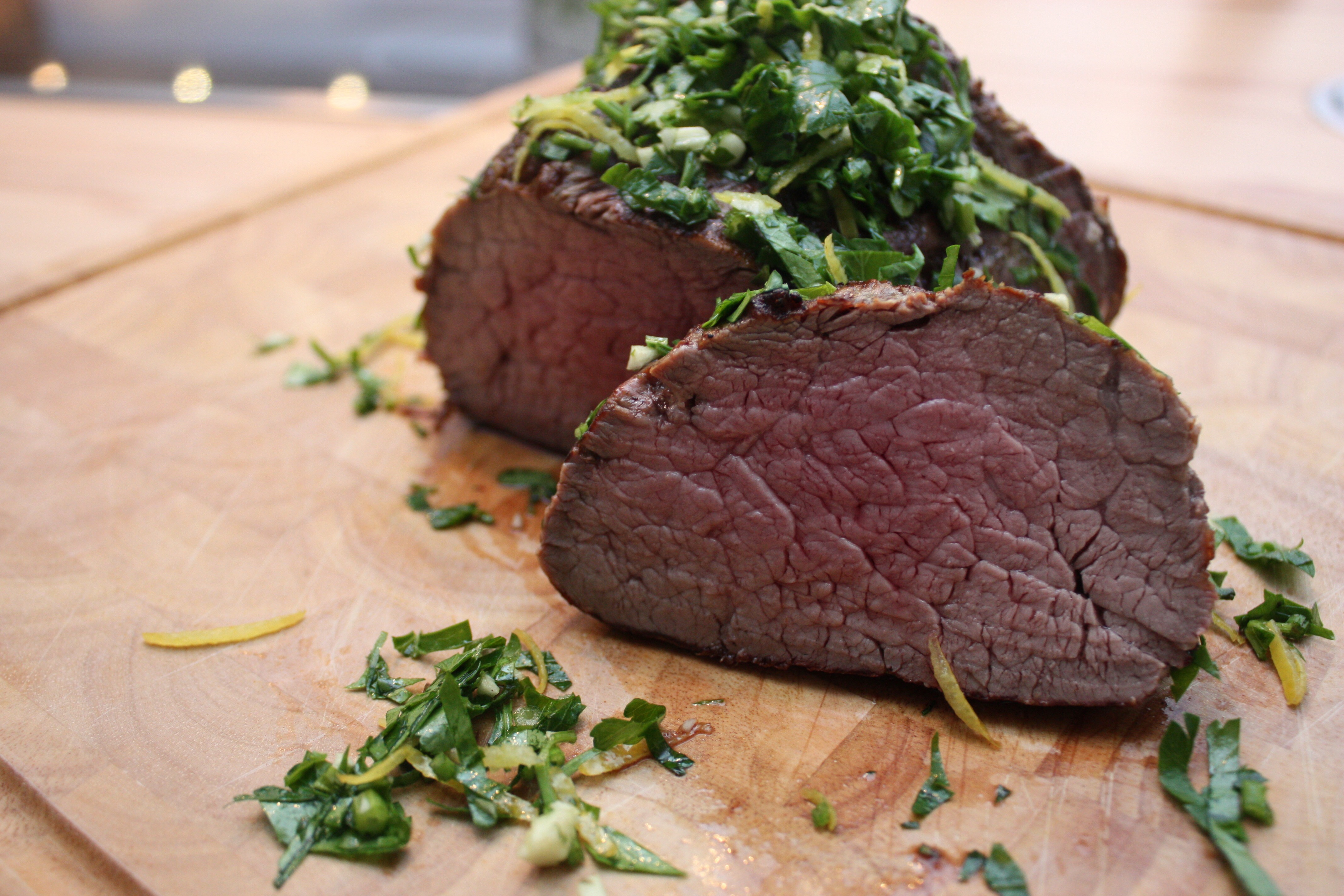 Das saftig zarte Filet passt hervorragend zu der Gremolata, die durch die Zitonenschale eine angenehme Frische erhält.