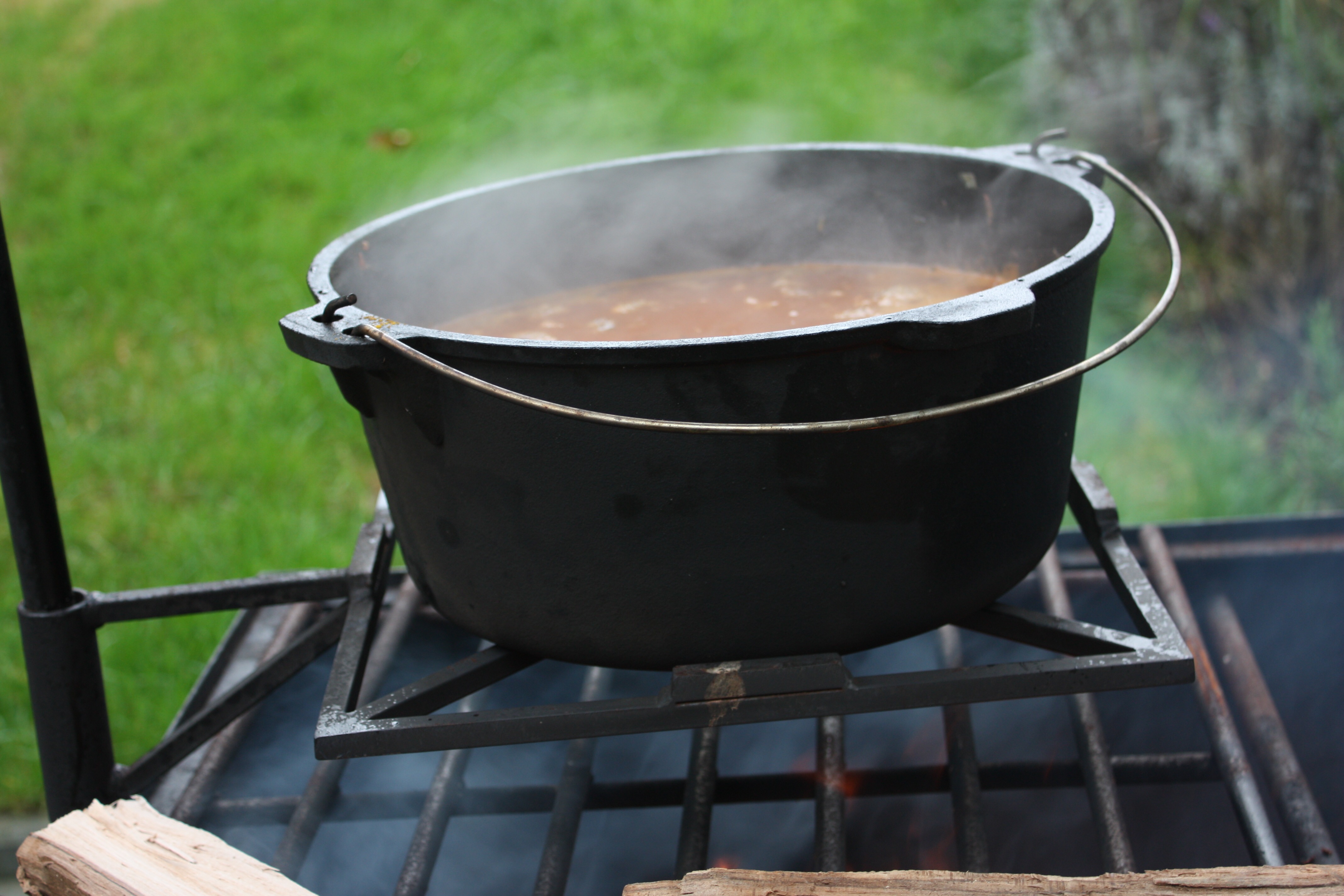 Nichts gegen Gas und Kohle, aber das Kochen über dem offenen Feuer ist ein besonderes Erlebnis. Es qualmt, zischt und riecht herrlich, es hat einfach etwas so ursprüngliches.