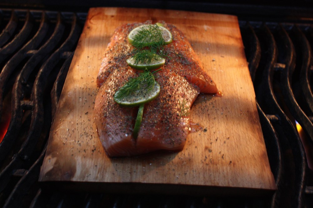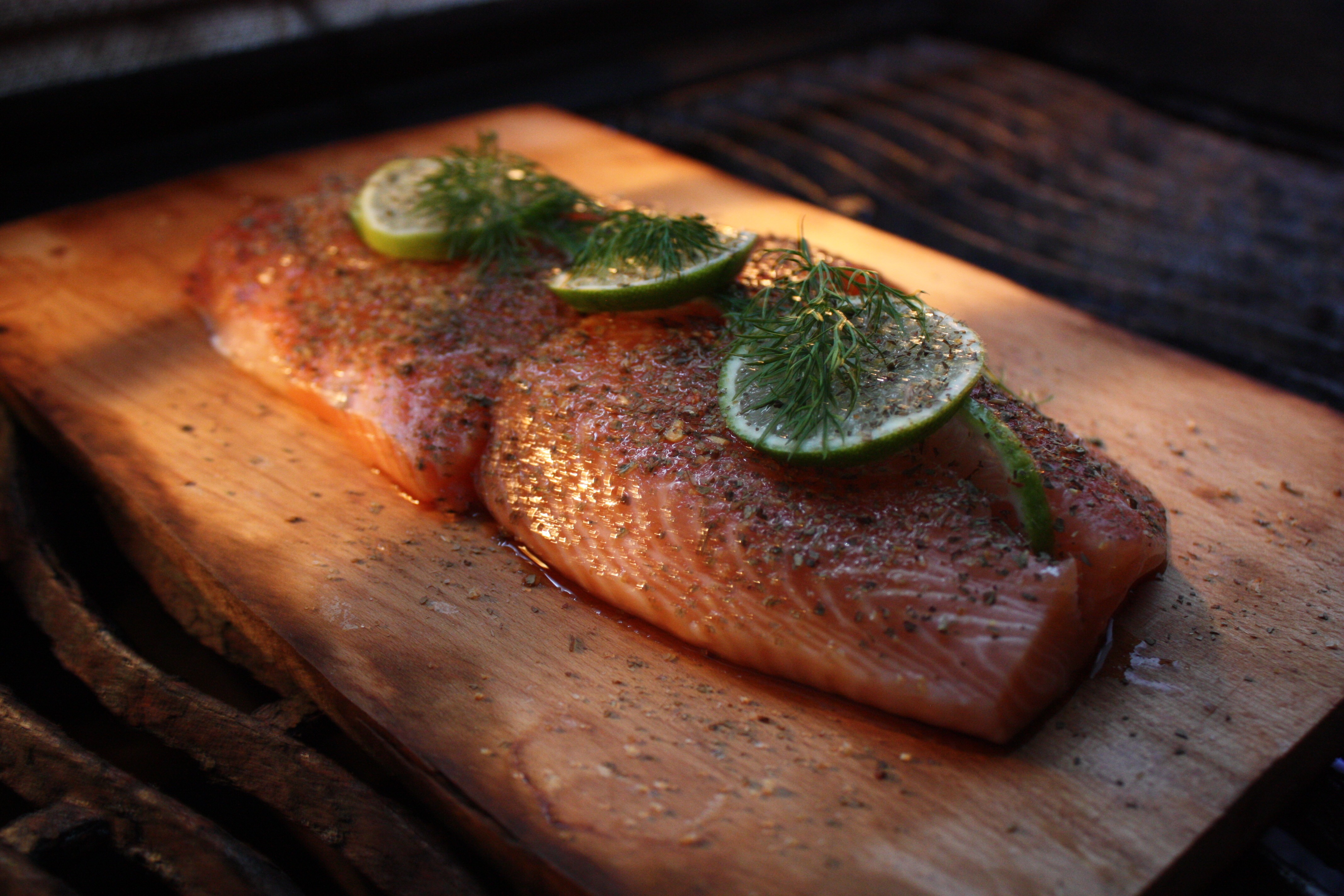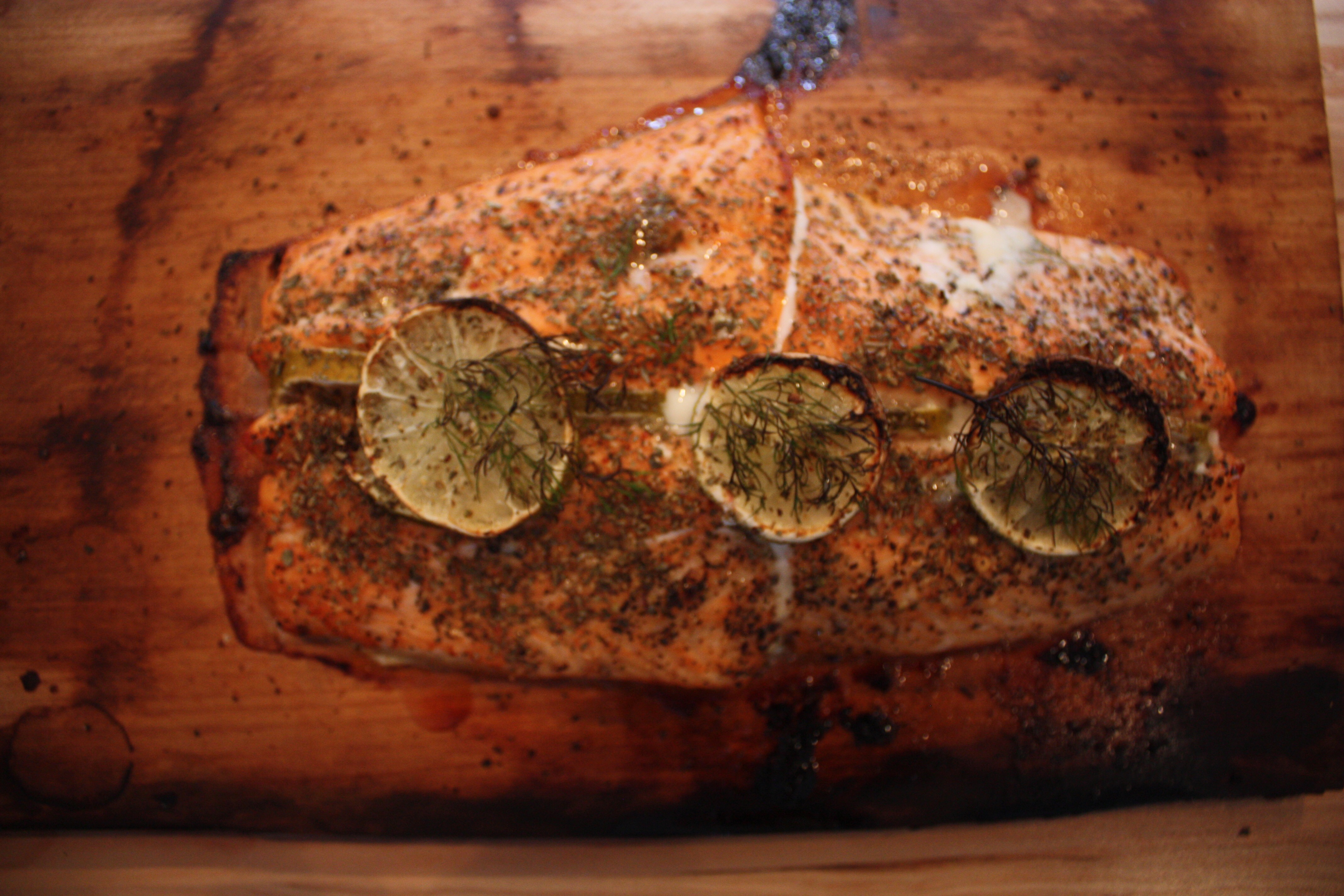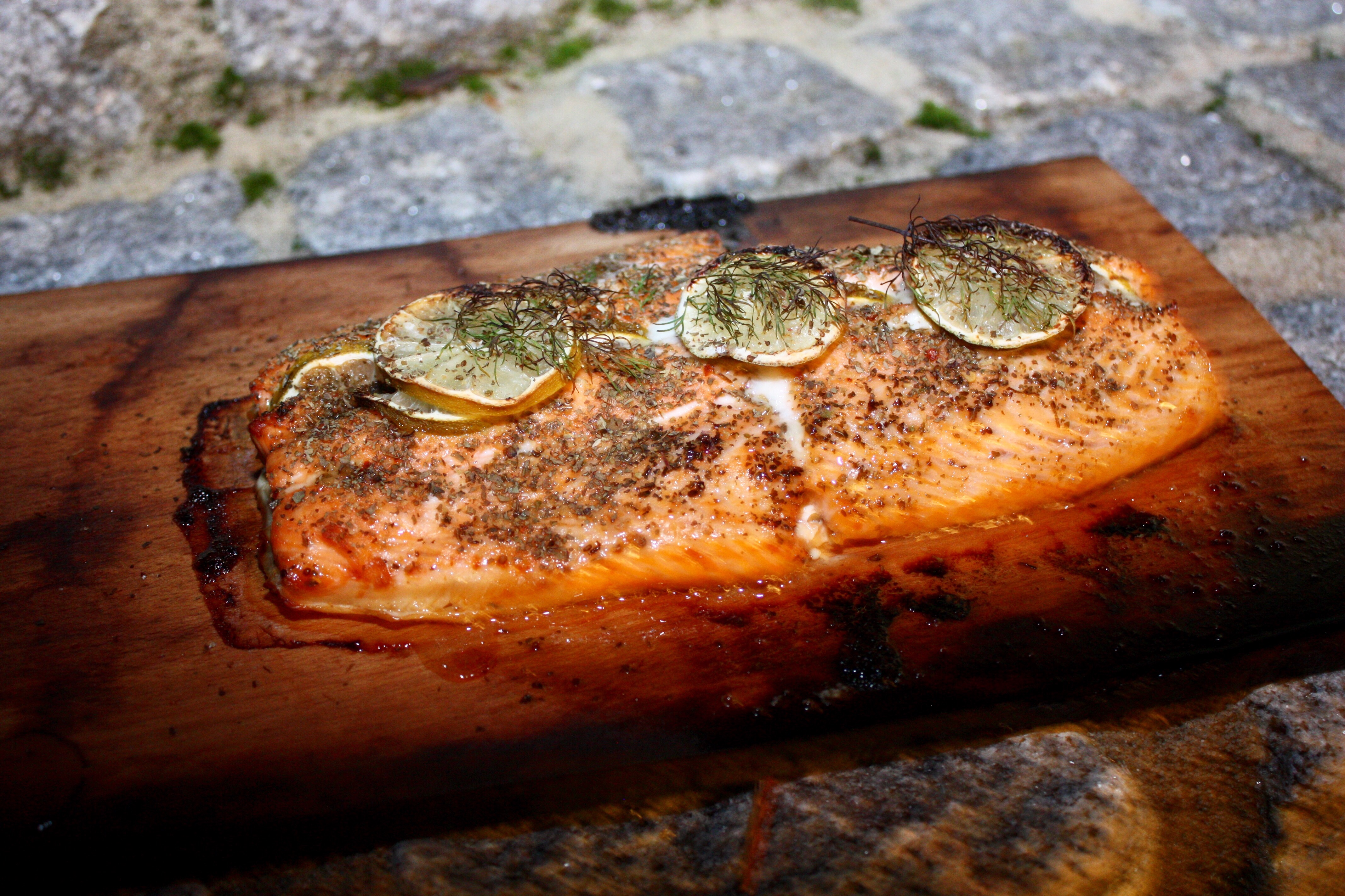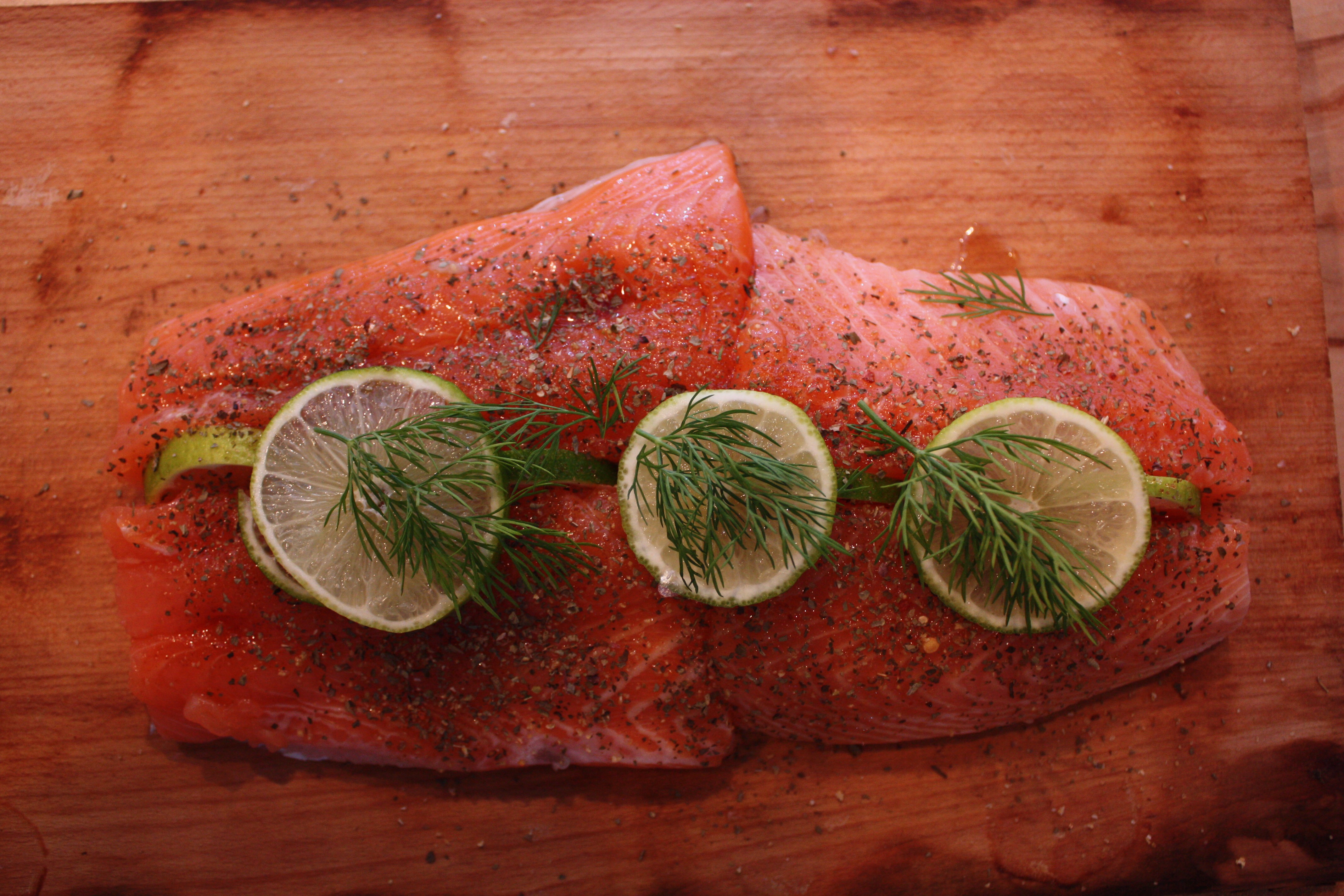 Den Lachs abwaschen und anschließend trocken tupfen und auf einer Grillplanke platzieren. Fleisch bis auf die Haut einschneiden und halbe Limettenscheiben hineinstecken. Etwas braunen Zucker oder Ahornsirup über das Filet streuen bzw. streichen. Nun mit einem Fisch und Scampi Gewürz rubben. Zusätzlich können noch ein paar Scheiben Limetten und ein paar Zweige Dill auf die Filets gelegt werden.