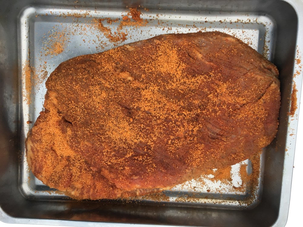 Am nächsten Morgen wurde das Brisket trockengetupft und großzügig mit Don Marcos Texas Rub eingerieben.