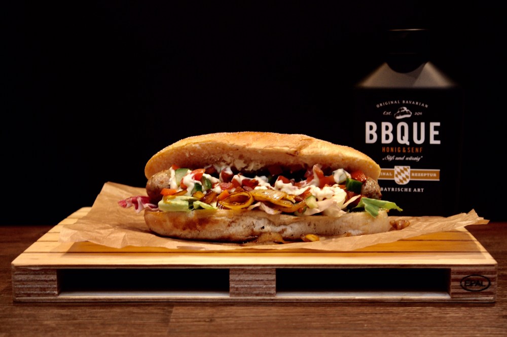 Hier zeige ich euch mal einen richtig guten Hot Dog. Dieser Hot Dog hat mit Fastfood wirklich gar nichts mehr zu tun. Die Wurst für diesen „Snack auf der Hand“ habe ich selber hergestellt und die Buns nach meinem Bunrezept 2.0 gebacken. Der Dog wurde mit Salat, Schmorzwiebeln und einem süß-sauren Relish sowie frischer Petersilie belegt. Als Saucen kamen die BBQUE Honig-Senf-Sauce und eine Senfmajo zum Einsatz.