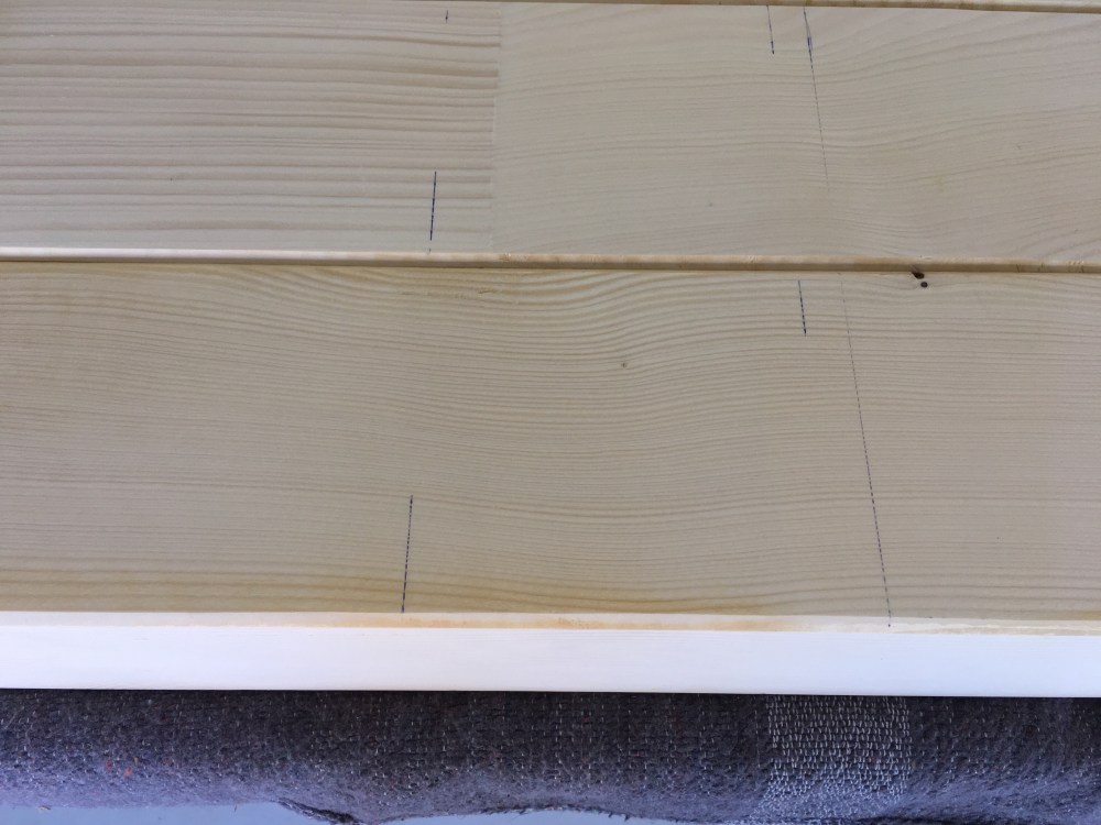 Das Holz habe ich an einer Tischkreissäge zugeschnitten. Alle Flächen wurden geschliffen und die Kanten angefast. Anschließend wurden alle wichtigen Maße auf das Holz übertragen..