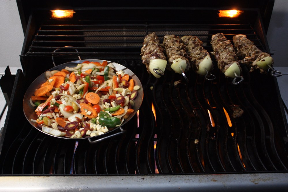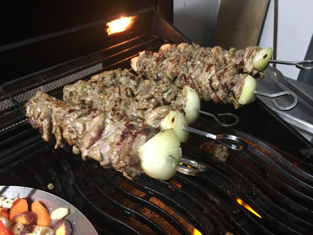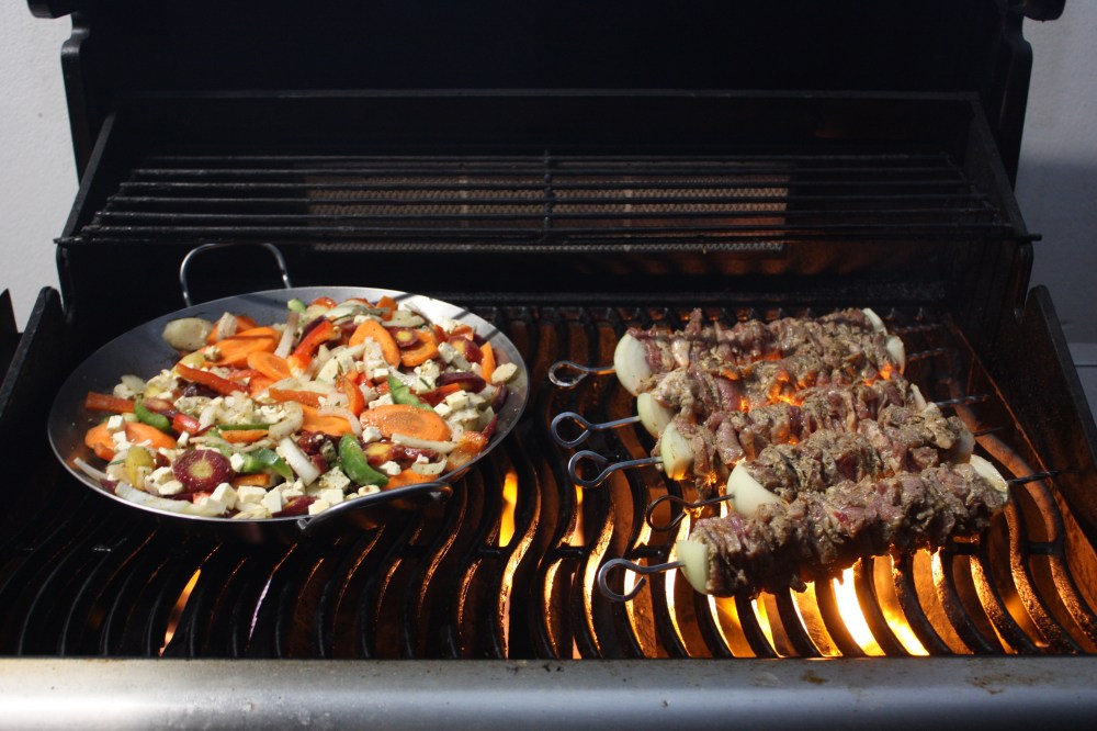 Die Spieße haben bei 220 Grad im Grill ca. 30 Minuten gebraucht.
