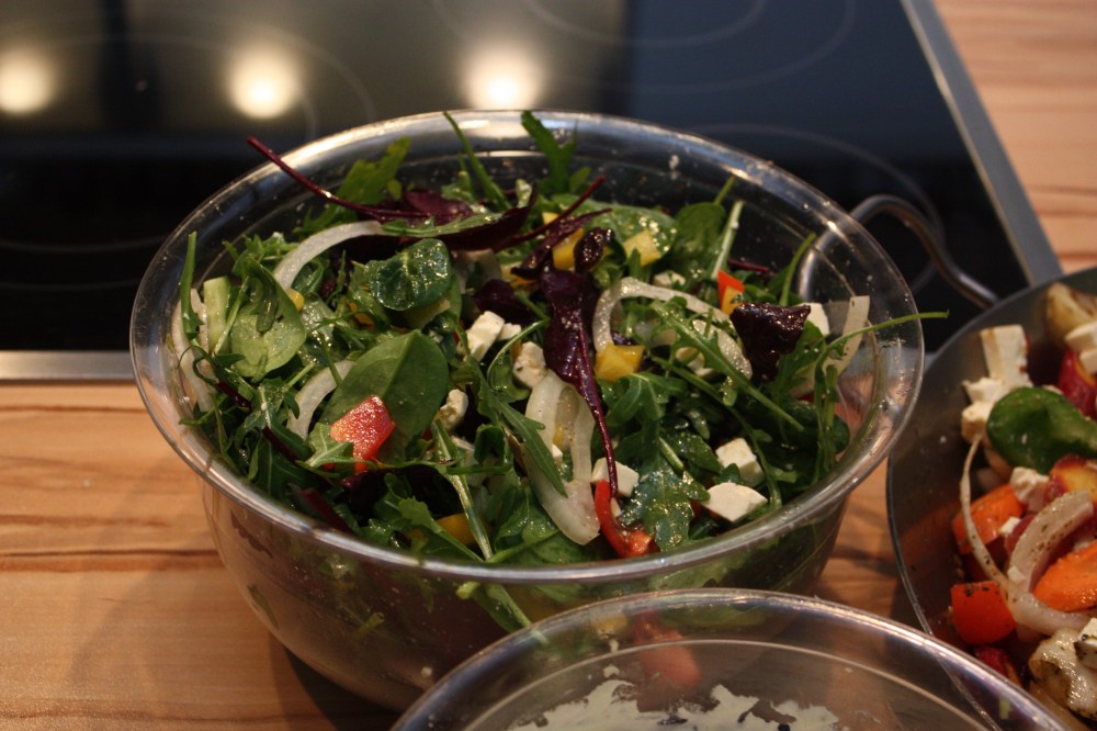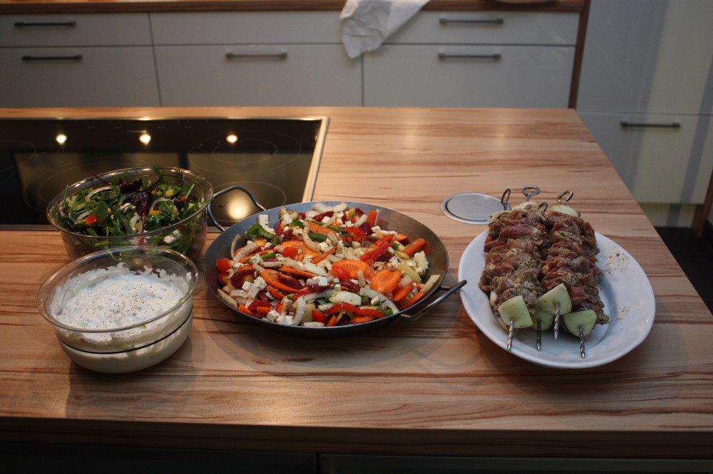 ..dazu etwas Grillgemüse, Tzatziki und ein griechischer Bauernsalat