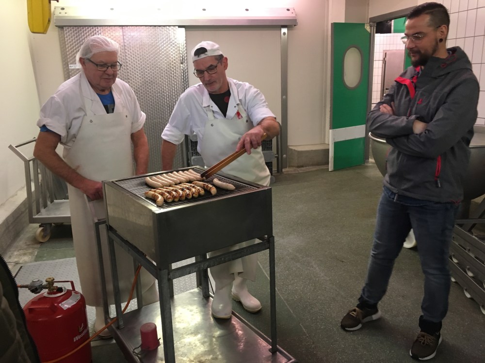 Die erste Verkostung der fertigen Würste fand bei der Firma Lammerschmidt statt.