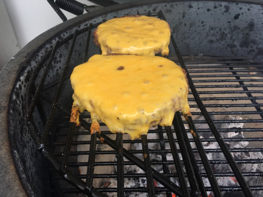 Die Paddys habe ich im Egg gegrillt und mit jeweils 2 Scheiben Cheddarkäse überbacken.
