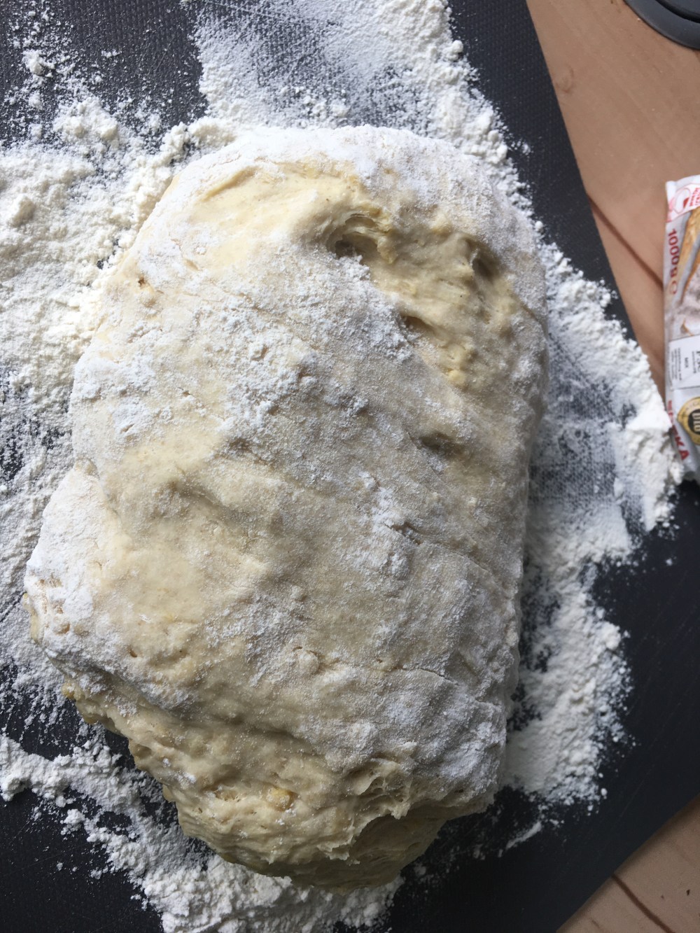 Die Backmischung in eine Schüssel geben und in der Mitte eine Mulde bilden. In diese die Hefe bröseln, einen halben Esslöffel Zucker darüber streuen und etwas lauwarmes Wasser hinzugeben. 5 Minuten stehen lassen, anschließend das restliche Wasser hinzugeben und alles zu einem glatten, nicht zu feuchten Teig kneten. In einer Schüssel abgedeckt ca. 45 Minuten ruhen lassen.