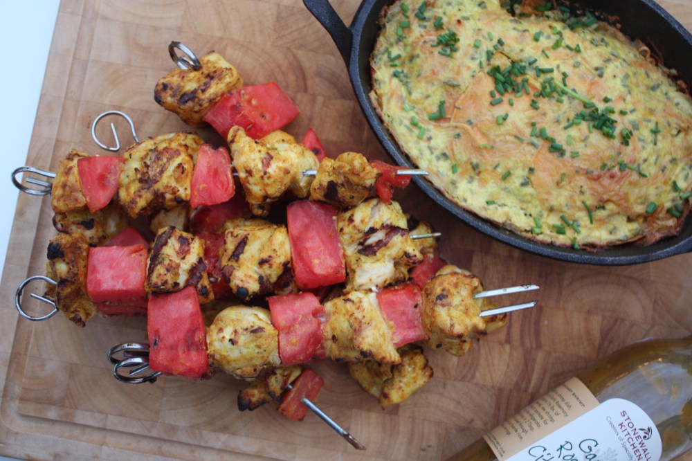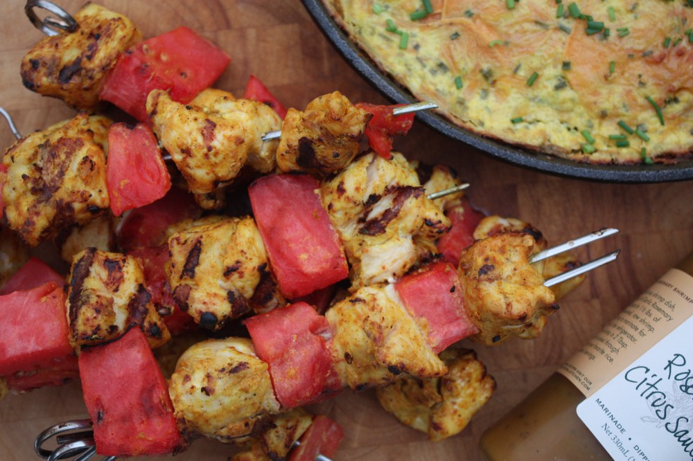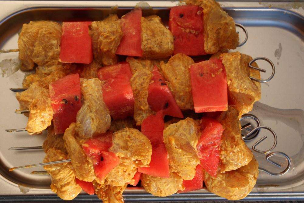 Leckere Kikok Brustfilets mit fruchtigen Melonenwürfeln auf einem Spieß vereint und mit einer Mischung aus Frischkäse und Don Marcos Crazy Chicken gewürzt. Eine leckere und leichte Idee für den nächsten Grillabend. Dazu ein superleckeres Süsskartoffelgratin. Schnell gemacht und echt lecker.