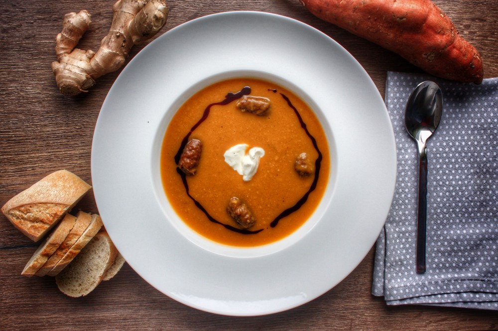 Was gibt es besseres als an einem kühlen regnerischen Herbsttag eine heiße deftige Suppe aus dem Dutchoven zu genießen. Hier zeige ich mein Rezept für eine würzige, leicht scharfe Süßkartoffel-Ingwer-Suppe. Wenige Zutaten vereinen sich hier zu einer sehr delikaten Köstlichkeit, die wohlig wärmen wird und satt macht. Aber Vorsicht, ein gewisses Suchtpotenzial ist ohne Zweifel vorhanden…