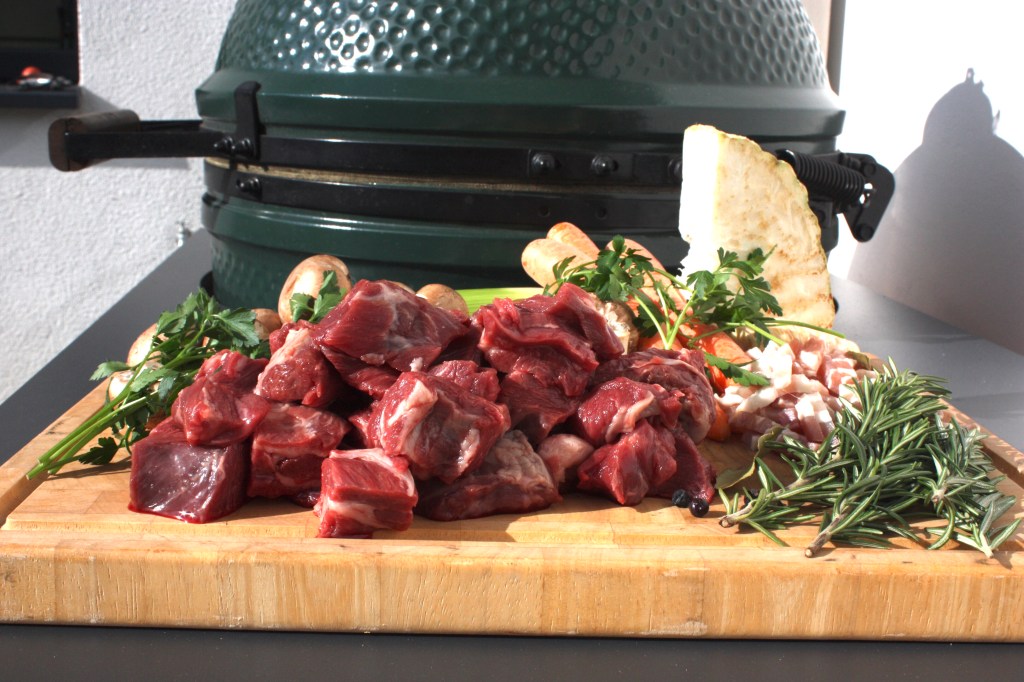 Obwohl der Frühling Einzug gehalten hat, ist es draußen doch wieder sehr kühl. Daher habe ich mich heute entschieden den Dutchoven anzuheizen, um ein deftiges Wildschweingulasch zu kochen. Damit ein Wildschweingulasch schön zart und weich wird, muss etwas Zeit in das Schmoren im Dutchoven investiert werden. Klassische Gewürze wie Lorbeer und Wacholderbeeren sorgen dafür, dass der schöne Wildgeschmack unterstützt wird und dadurch das gesamte Gericht sehr aromatisch wird.
