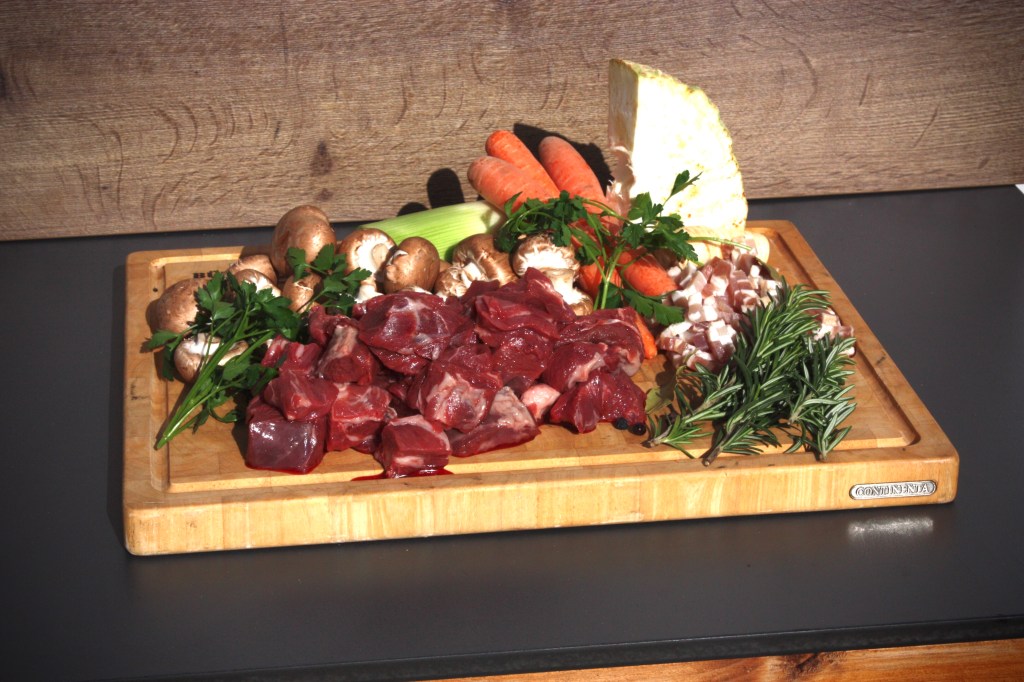 - 1kg Wildschweinfleisch (Bratenfleisch aus Schulter oder Nacken)