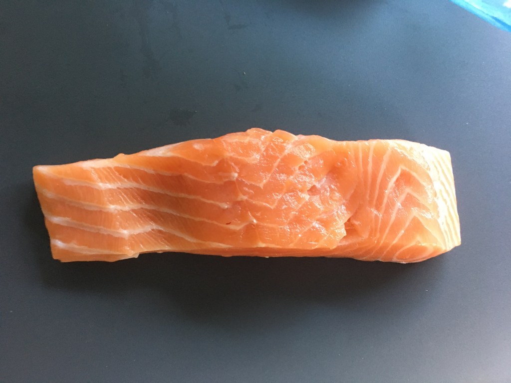 Den Lachs von der Haut befreien und in Portionsstreifen schneiden.