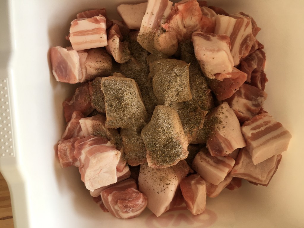 - 1,5 kg Schweinebauch ohne Schwarte und Knochen