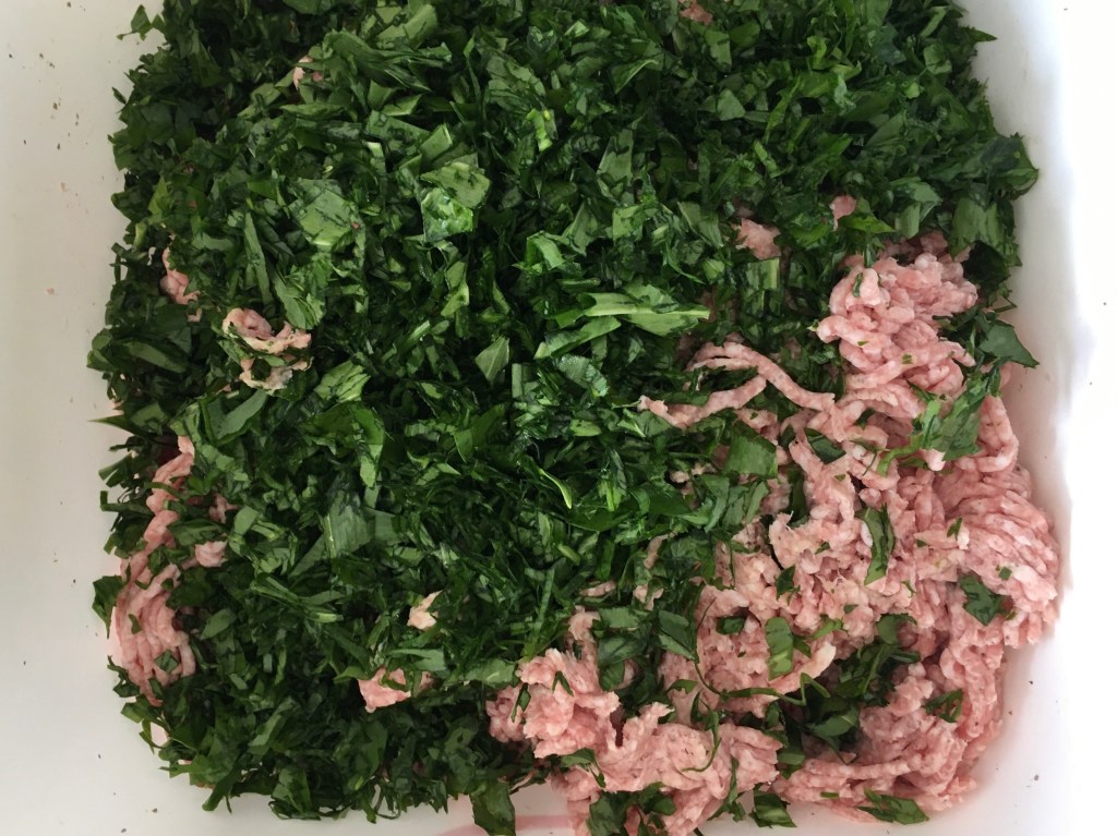 Schließlich noch 4 Eiswürfel wolfen und zusammen mit dem Bärlauch hinzugeben. Das Brät abermals gut mischen und kneten, bis eine klebrige Bindung entsteht. Immer die Temperatur im Auge behalten und sauber und hygienisch arbeiten. Das ist bei der Wurstherstellung oberstes Gebot!