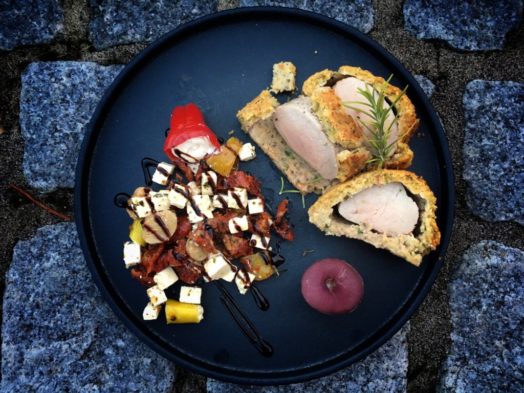 Serviert habe ich das Filet mit einem leckeren Antipasti-Leftover-Salat.
