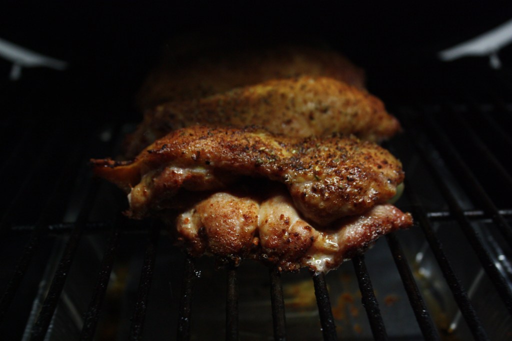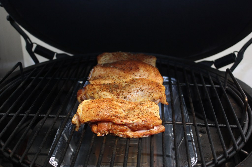 Die Pollo Fino waschen, trockentupfen und beidseitig großzügig mit dem Rub würzen. Nun die Fleischstücke etwas einrollen, sodass die Haut außen ist. Mit der Haut nach oben auf dem Grillrost über einer Tropfschale platzieren und so ca. 1 bis 1,5 Stunden grillen. Die Haut sollte richtig schön knusprig sein.
