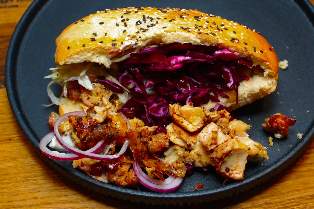 Klar, man kann zum Hörer oder zum Handy greifen und sich einen leckeren Döner bestellen, der einem sicherlich auch noch lauwarm in Mengen von Alufolie bis an die Haustür geliefert wird. Aber kann man nicht auch selber einen leckeren Döner zubereiten? Selbst wenn man keinen Drehspießgrill besitzt und nicht gleich einen ganzen Spieß zubereiten möchte? Klar, funktioniert und zwar richtig gut und kecker! Der Kniff heißt Pollo Fino. Das ist Hähnchenkeulenfleisch, bei dem die Knochen ausgelöst worden sind und man nur das saftige Keulenfleisch mit der Haut erhält. Fragt bei eurem Geflügeldealer danach, er kann euch sicherlich weiterhelfen. Ich habe für die Zubereitung Pollo Fino von Kikok vom Hof Borgmeyer verwendet. Dieses erhält man bei uns in Melle im Edeka Altenbernd.