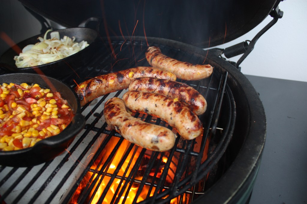 Die Bratwürste bis zur gewünschten Bräunung über der direkten Hitze grillen.