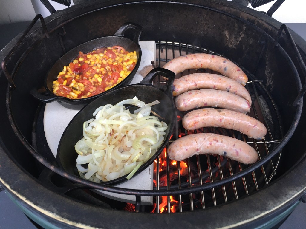 Hey, ihr wisst nicht was ihr grillen sollt? Wie wäre es mal mit einem leckeren Hot Dog im Mexican Style? Saftige Buns, eine würzige Wurst, eine pikante Cheesy-Salsa und dazu noch ein paar schlotzige Schmorziebeln, fertig ist ein richtig leckerer Hot Dog. Ok, die Wurst die ich für diesen Dog verwendet habe, hatte ich neulich unter der Zugabe von Mais, Chili, Bohnen und einer mexikanischen Gewürzmischung selbst gewurstet, aber auch jede andere Bratwurst macht hier eine gute Figur. Erlaubt ist, was schmeckt! Also, nutzt das gute Wetter und ab an den Grill. Hier das Rezept dazu: