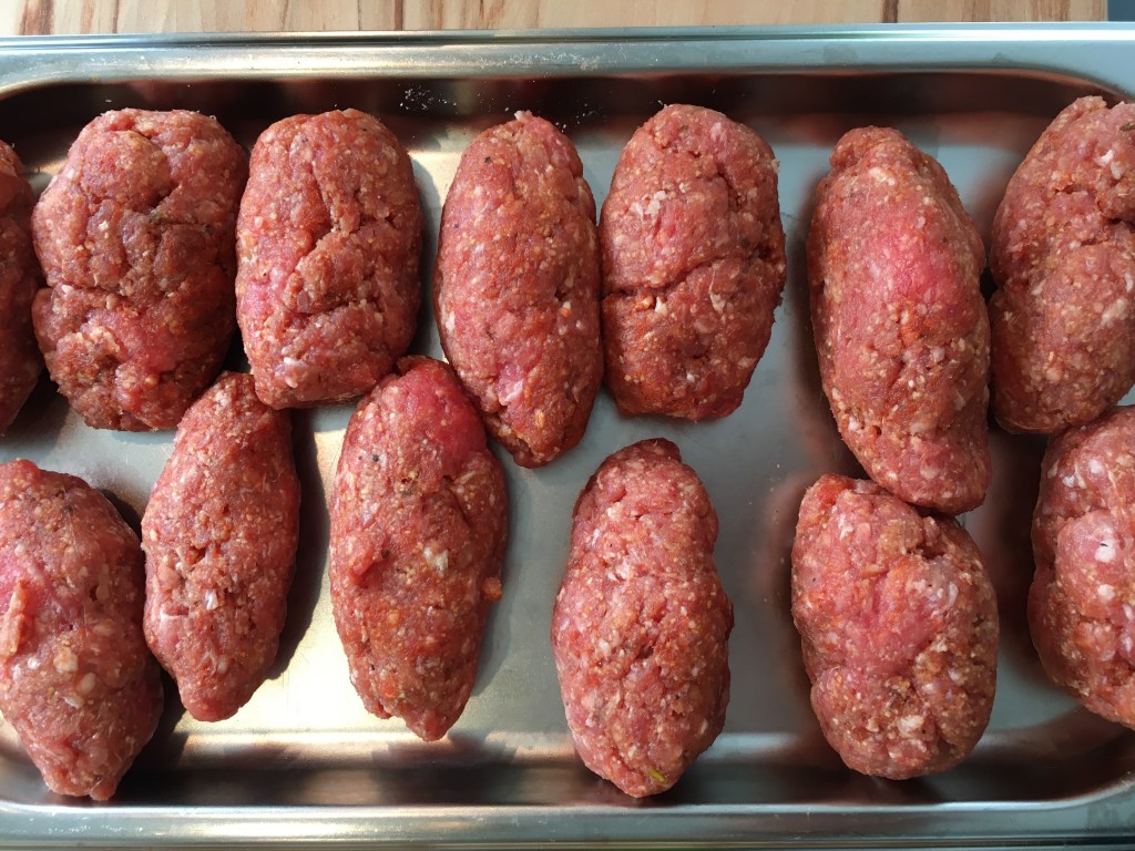 Das Gehackte mit dem Ei und den Gewürzen vermengen und zu kleinen Eiern formen.