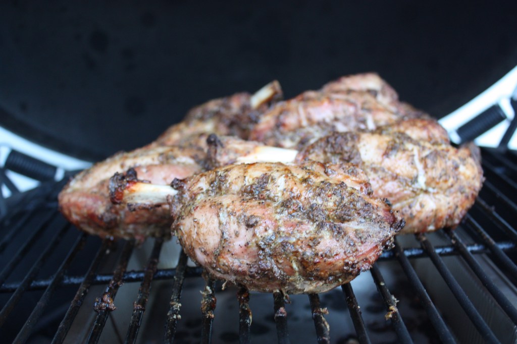 Am Zubereitungstag den Grill auf 160 Grad indirekte Hitze einregeln und die Haxen auf den Rost legen. Eventuell eine Tropfschale unter dem Rost platzieren . So werden die feinen Stücke ca. 1,25 Stunden gegrillt.