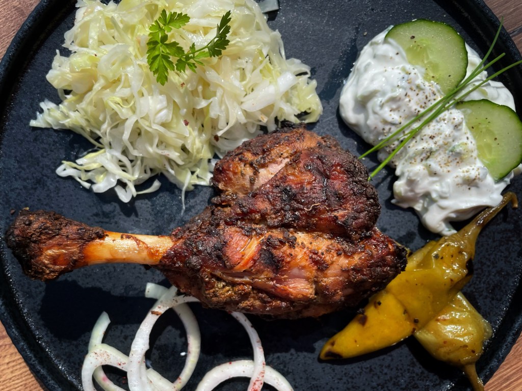 Ist es ein Frevel eine Haxe, das typisch deutsche Kultgericht, mit einem Gyrosrub zu würzen?? Ich finde nein, denn das Ergebnis war wirklich super! Zartes Haxenfleisch mit dem typischen Gyrosgeschmack, wie man ihn nur mit Don Marcos „Dancing Sirtaki“ Rub hinbekommt, quasi Gyros am Stiel. Dazu noch etwas Krautsalat und Tzatziki, fertig ist ein wunderbarer Teller.