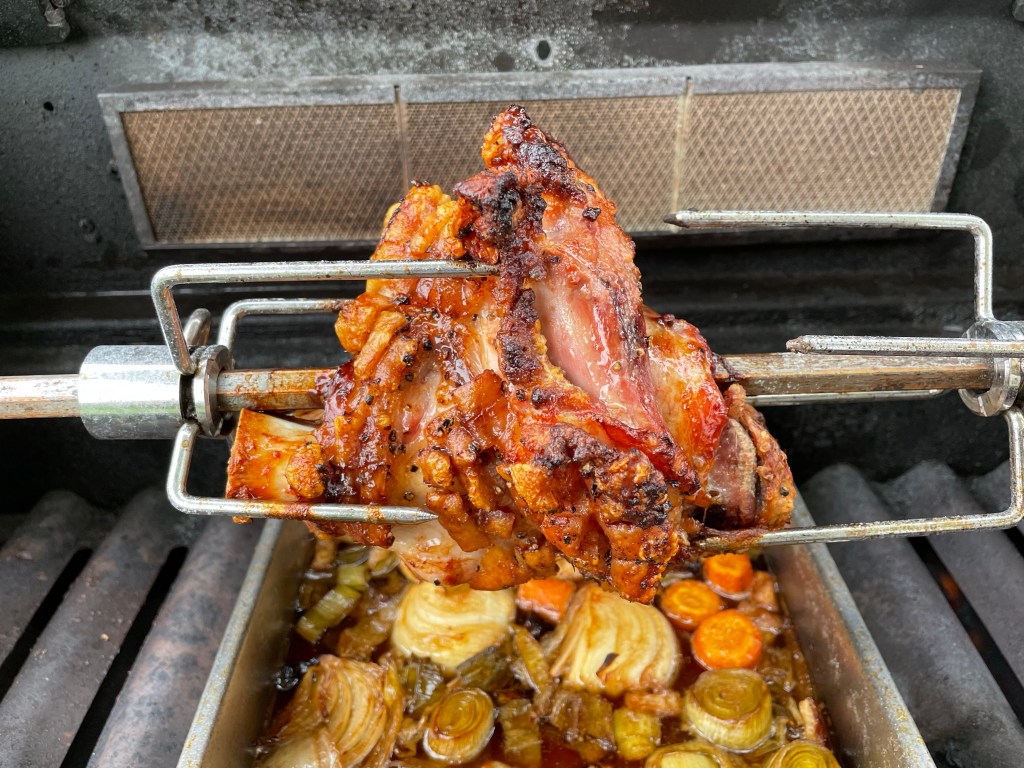 Zubereitet habe ich diesen Gaumenschmaus mit Hilfe einer Rotisserie auf dem Napoleon Gasgrill.
