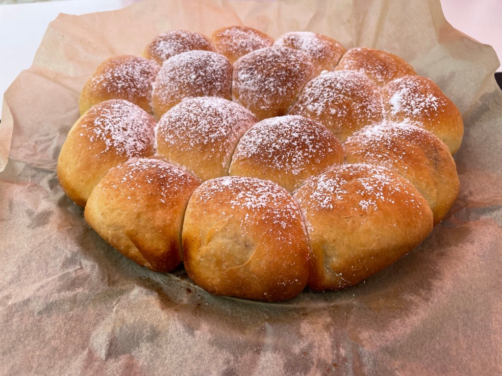 Nach ca. 30 Minuten sind die Buchteln fertig und können mit etwas Puderzucker verfeinert werden. Eine leckere lauwarme Vanillesauce passt auch perfekt zu diesem Leckerbissen.