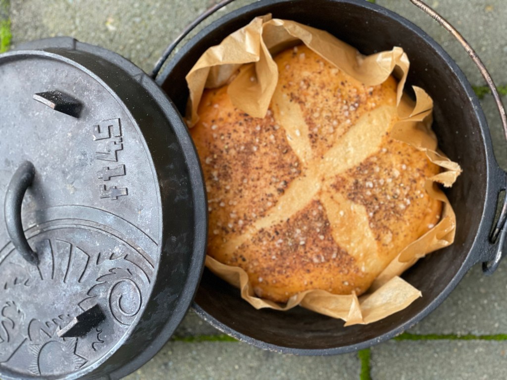 Fertig ist ein schnelles selbst gebackenes Weißbrot aus dem Dutchoven.