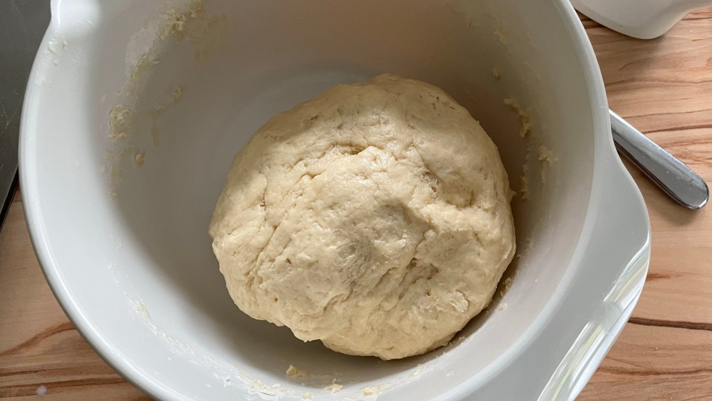 Für den Teig: Alle Zutaten mit den Händen oder in der Küchenmaschine (ca. 5 Minuten) zu einem glatten Teig verkneten und an einem warmen Ort 1 Stunde gehen lassen.