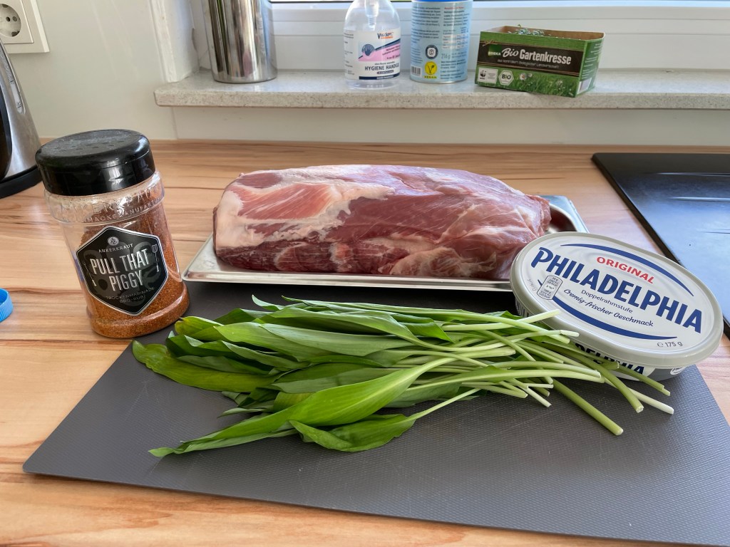 Nach Bärlauchpesto und Bärlauchbutter habe ich heute mal einen Rollbraten mit einer Frischkäse-Bärlauchfüllung im Pelletsmoker zubereitet. Wirklich easy und superlecker.