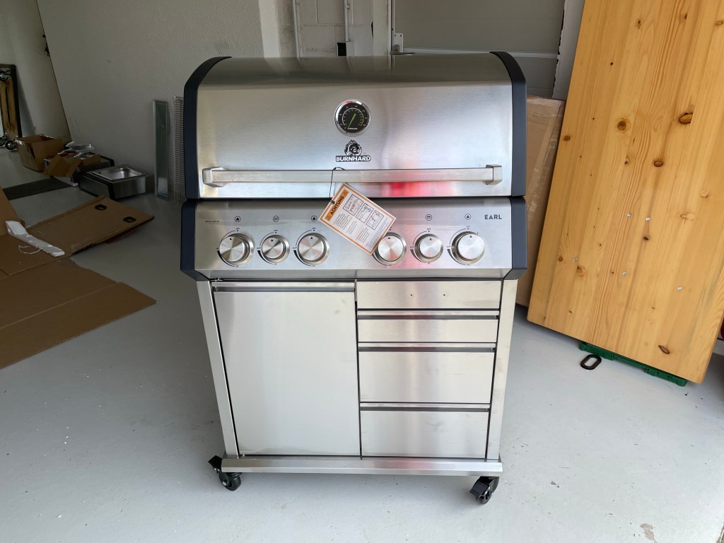 Lange hatte ich Freude an meinem Napoleon LE3. Er war mir ein treuer Weggefährte auf meinem kulinarischen BBQ Weg. Aber nun, nach mittlerweile 9 Jahren, verschlissenen 6 Brennern, 2 Satz Rosten und Flammleitblechen sowie einer neuen Fettauffangwanne wird es Zeit für ein neues Grillgerät. Lange habe ich gegrübelt, welches Sportgerät es wohl werden könnte und wieviel Geld ich investieren möchte. Voraussetzung waren für mich, das der Neue einen außen liegenden Infrarotbrenner sowie einen Backburner besitzt. Als ich dann von Burnhard das Angebot von 20% auf alles über Corporate Benefits bekam, war die Entscheidung schnell getroffen und der Grill zusammen mit der passenden Rotisserie bestellt. Nach 4 Werktagen wurde der Grill von der Spedition Dachser bei uns angeliefert.