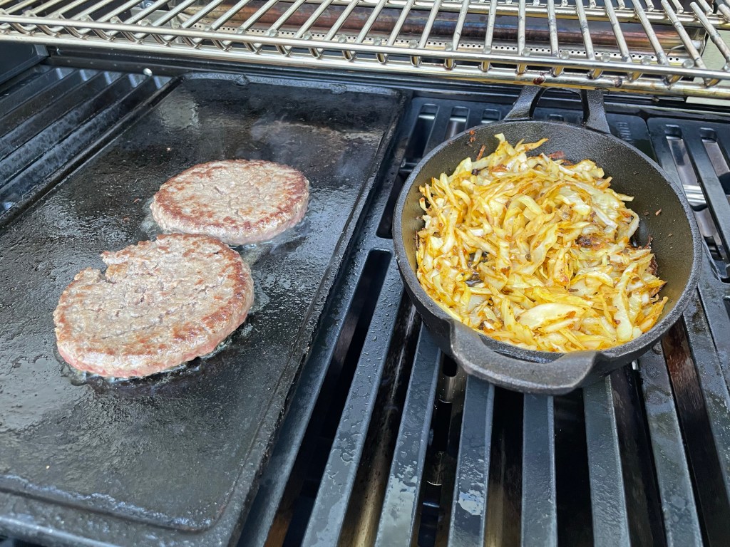 Schnippelt als erstes den Weißkohl und würzt ihn deftig mit einem richtig guten TexMex Rub. Ich vertraue hier dem hammermäßigen Sombrero Rub von Don Marcos. Gebt etwas Speiseöl in eine Grillpfanne und schmort den Kohl bei geringer Hitze für 15 Minuten.
