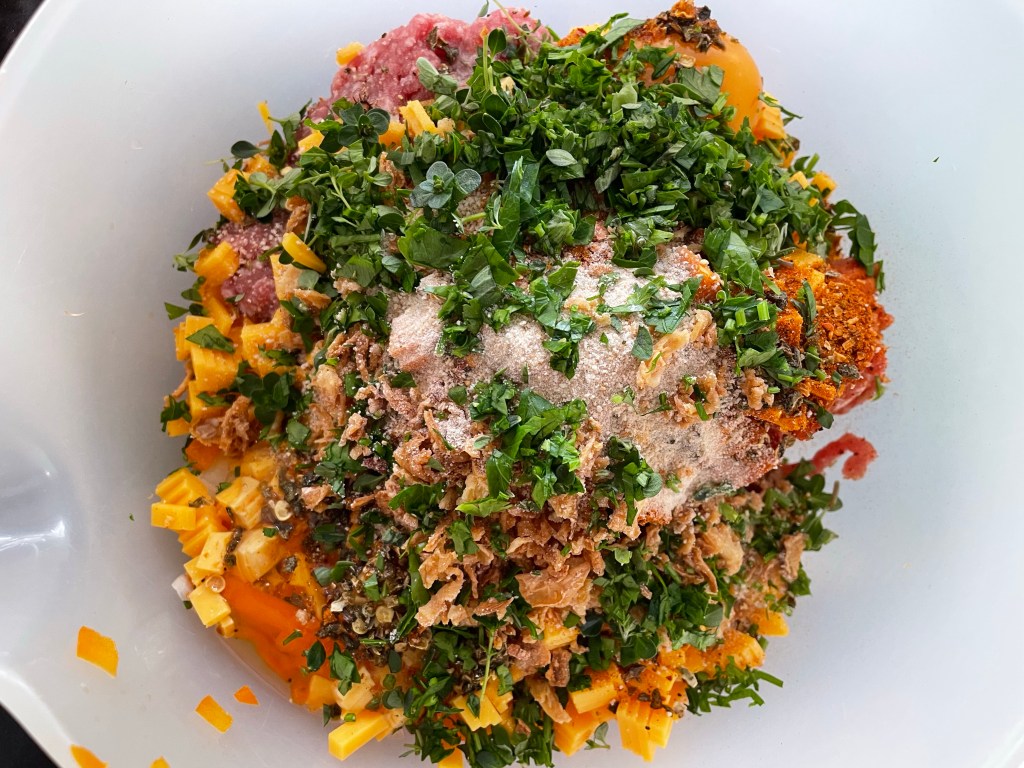 Die Zubereitung ist wirklich einfach. Fügt die oben aufgeführten Zutaten zusammen und knetet die Masse gut durch. Anschließend formt ihr mit nassen Händen schöne Meatballs und lasst sie im Kühlschrank kurz durchziehen.