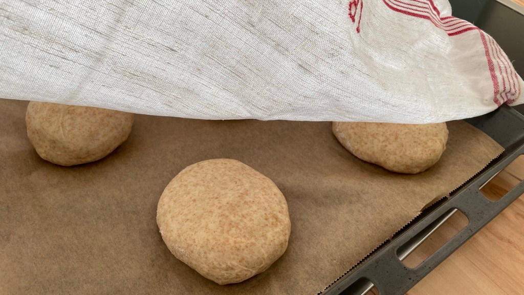 Anschließend sollten die Buns noch einmal 30 Minuten zum Gehen bekommen. In dieser Zeit kann der Backofen schon auf 220 Grad Ober- und Unterhitze vorbereitet werden.