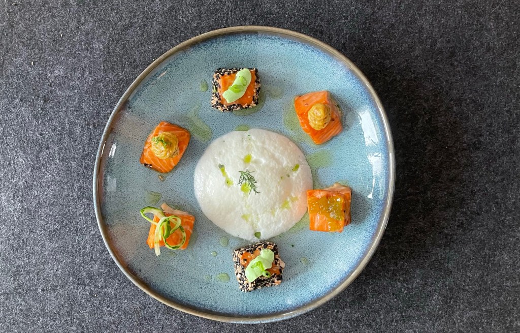Lachs von einer Grillplanke ist ein absoluter Hit. Du kannst entweder eine ganze Lachsseite oder diese köstlichen Lachspralinen zubereiten. Die Lachswürfel werden 2 Stunden lang in einer schmackhaften Marinade eingelegt. Danach legst du den Lachs auf ein eingeweichtes Räucherbrett aus Zedernholz und stellst dieses auf den Rost deines Grills. Das Räucherbrett schützt den Lachs vor der direkten Hitze der Holzkohle, verleiht dem Fisch ein feines Aroma und sorgt zugleich für ein einfaches Handling der feinen Würfel. Verschiedene Toppings sorgen für zusätzliche Geschmacksexplosionen. Perfekt für eine Vorspeise, oder als kleiner schmackhafter Gruß aus der Grillküche auf deinem nächsten Grillfest. Zusätzlich, und um den Teller abzurunden, habe ich noch einen herrlichen frischen und intensiv schmeckenden Gurkenschaum zubereitet. Das Rezept findet ihr ebenfalls hier. Viel Spaß damit.
