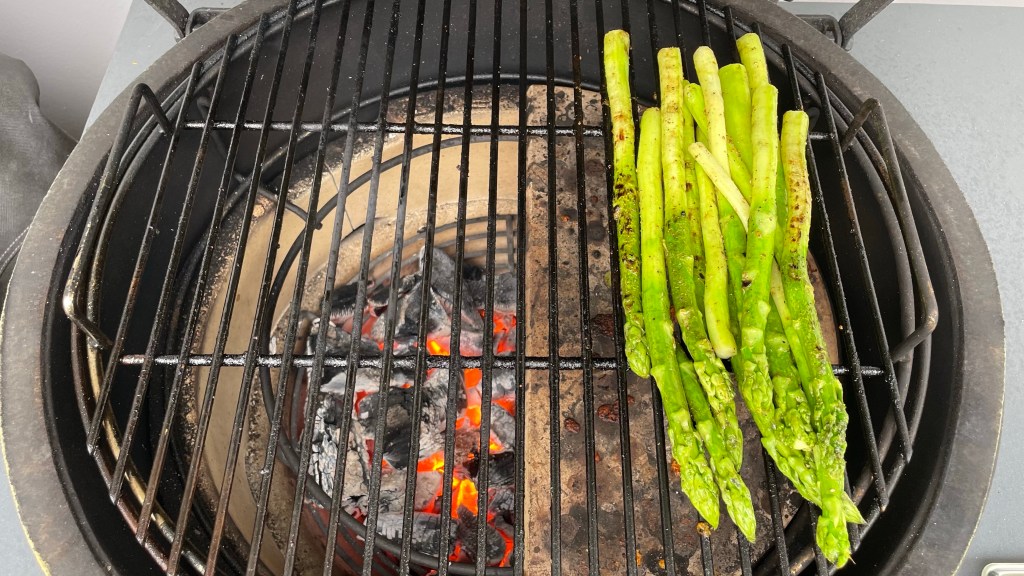 Auf dem eingeheizten Big Green Egg wurden die Stangen unter mehrmaligem Wenden 5 Minuten direkt und weitere 5 Minuten im indirekten Bereich – bei 180 Grad – gegrillt.