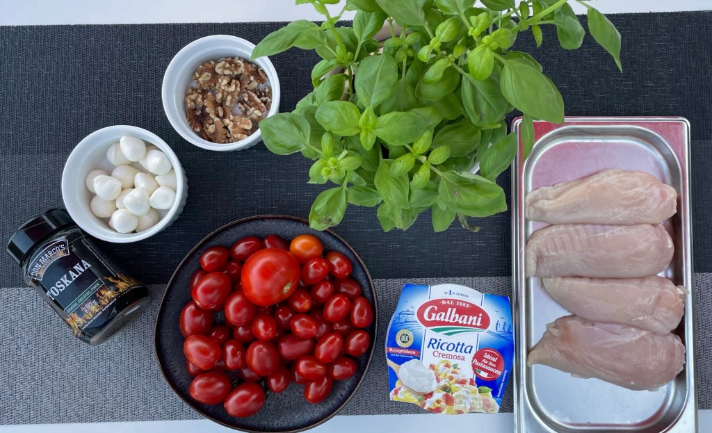 Hübsch angerichtet in der Steingut-Kollektion „Like“ von Villeroy & Boch sind meine geschmolzenen Ricotta Tomaten mit Hähnchenstreifen ein gesunder leichter und mediterraner Genuss für die ganze Familie.