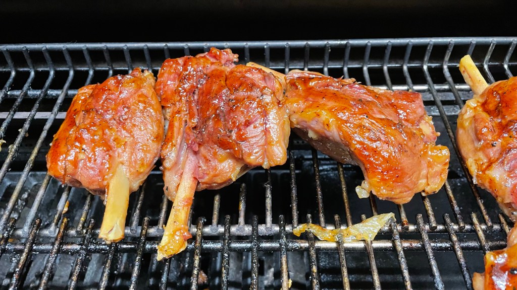 Die gegarten Haxen aus dem Sud nehmen und mit einer Glace aus dem Honig und der Sojasauce glasieren. Die Haxen so auf dem Rost im indirekten Bereich ziehen lassen, bis der Honig karamellisiert und die Haxen einen unwiderstehlichen Glanz bekommen. Dieses dauert ca. 30 Minuten.