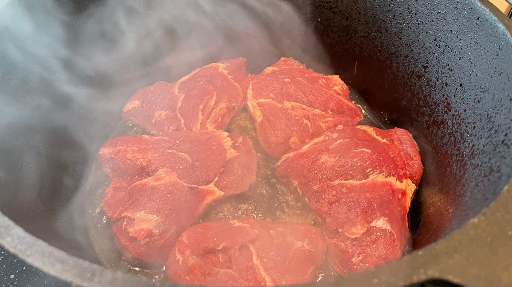 Bei 150 °C mit Deckel ca. 3 Stunden garen. Die Bäckchen herausnehmen, Fond passieren und evtl. etwas reduzieren und mit etwas Speisestärke abbinden. Für den Glanz noch ein Stück kalte Butter hinzugeben. Die Bäckchen in der Soße erwärmen und heiß servieren.