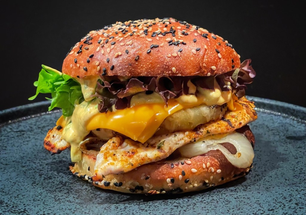 Schaut doch echt lecker aus! Wer auf die Kombination von Hähnchen, Ananas und Curry steht, wird diesen Burger lieben.