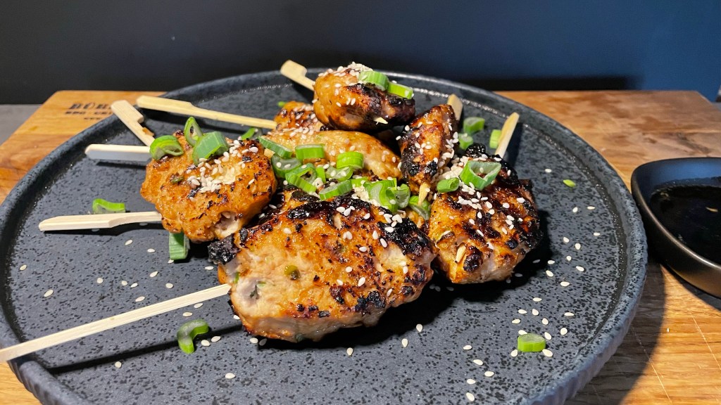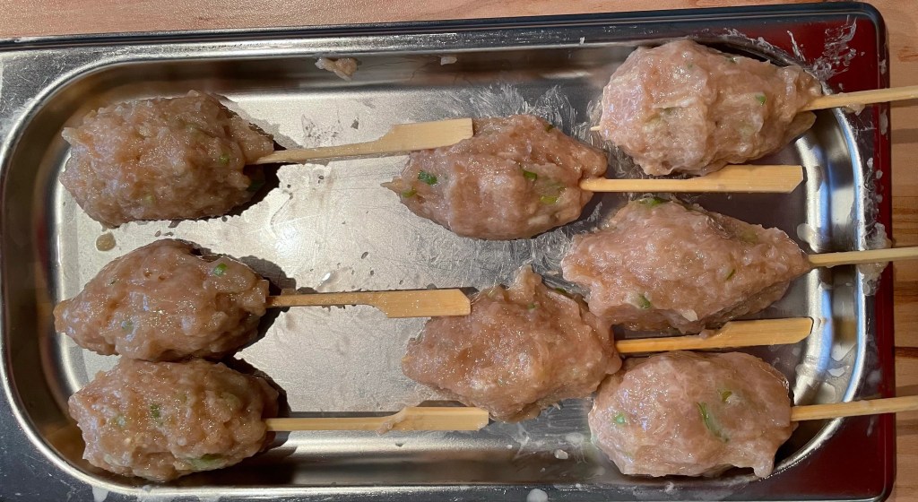 Heute wurde es japanisch und richtig lecker am Big Green Egg. Ich habe leckere Tsukune gegrillt. Tsukune Yakitori sind japanische Fleischbällchen aus Geflügelhackfleisch. Tsukume Yakitori wird üblicherweise mit Salz oder einer würzigen Sauce serviert, deren Grundbestandteile Mirin, Sojasauce und Zucker bilden. Die Sauce wird auf das aufgespießte rohe Fleisch aufgetragen. Nach dem Grillen wird es zusammen mit der übrigen Sauce zum Dippen serviert.