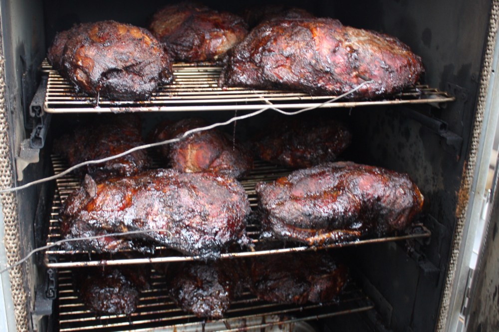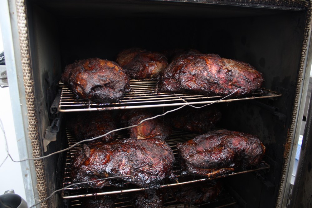 Gart den Braten ca. 15 Stunden indirekt, bei 110 bis 120 Grad im Grill oder Smoker, bis zu einer Kerntemperatur von 91 Grad. Wer den Garprozess etwas beschleunigen möchte, kann das Fleisch bei ca. 70 Grad in Butcherpaper einwickeln. Bei erreichen der Kerntemperatur lasst Ihr das Fleisch etwas ruhen und zupft es anschließend mit 2 Gabeln auseinander…