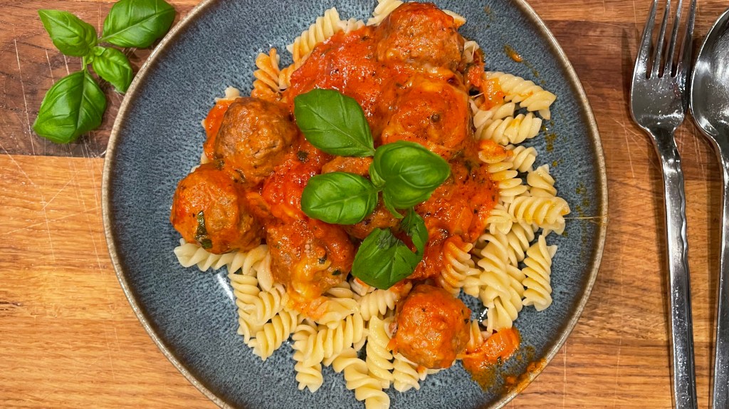 Leckere Hackfleischbällchen in einer delikaten Tomatensauce mit frischen Kräutern und cremigen Mozzarella… Schnell und einfach gemacht. Perfekt zu ein paar Nudeln oder Spaghetti.